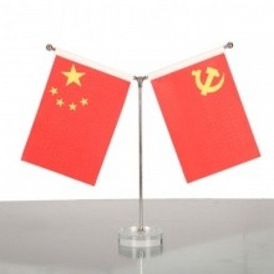 办公桌PVC底座旗座党旗国旗(默认国旗+党旗)金色水晶底座Y型桌旗