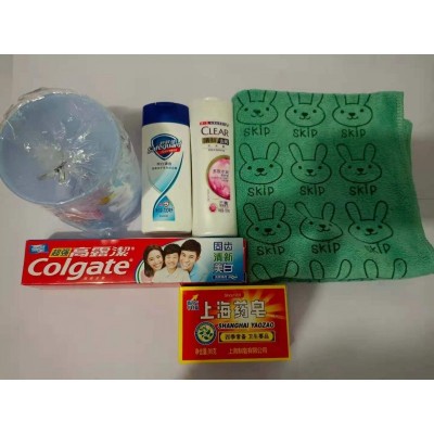 洗漱套装(包含毛巾/漱口杯/沐浴露/洗发水/牙膏/上海皂)