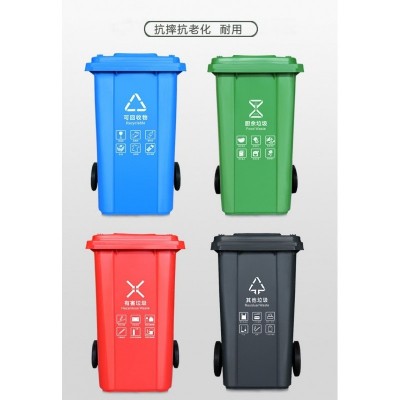 240L分类垃圾桶 红色桶(有害垃圾)加厚型可挂车