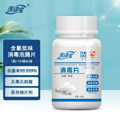 洗得宝含氯消毒液泡腾片 84消毒片100片/瓶