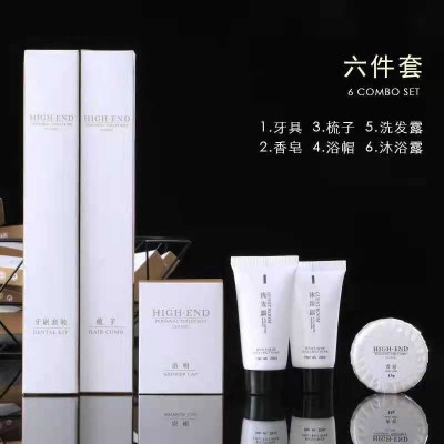 酒店一次性用品六件套含 梳子 、牙具、肥皂、洗发水、沐浴液、浴帽 (100套起订)