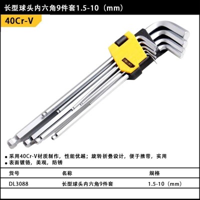 得力DL3088内六角扳手套装内六角螺丝刀球头内六方扳手加长6角