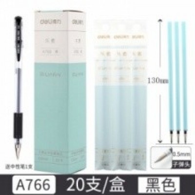 得力 A766 中性笔笔芯0.5mm子弹头(黑) 20支/盒 (计价单位:支)