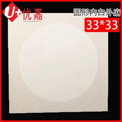 加厚宣纸(圆形33cm*33cm外麻内白)10张/包 国画卡纸免装裱镜片纸生宣纸书法作品纸空白熟宣纸工笔画专用圆形软卡扇面水墨画纸儿童水彩画SKU:YJ001968