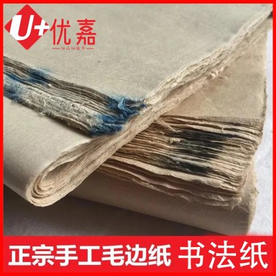 纯手工毛边纸书法纸(尺寸46*76)50张/包 蝉翼毛边纸书法纸毛笔字练习创作宣纸毛边纸书法纸一包SKU:YJ001984