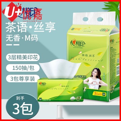 心相印 茶语丝享系列抽纸家用办公实惠装纸巾餐巾纸面巾纸抽纸150抽三层塑装纸面巾抽纸卫生纸3包/提 DT32150 SKU:YJ002044