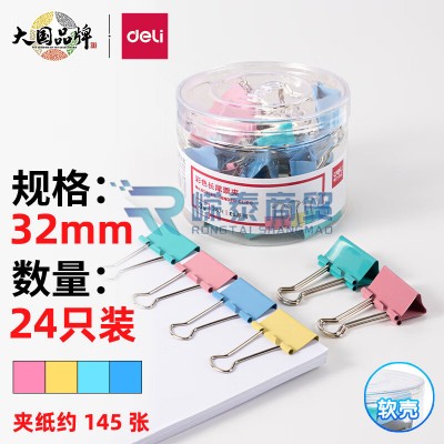 得力(deli)24只32mm彩色长尾夹票夹 3#号 8553ES一盒SKU:YJ002124