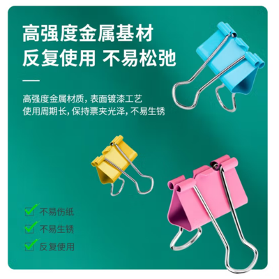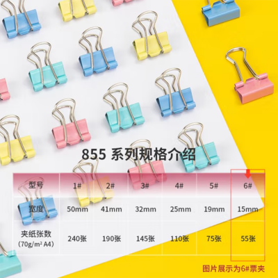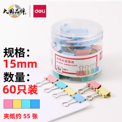 得力(deli)60只15mm彩色长尾夹票夹 6#号 8556一盒SKU:YJ002127