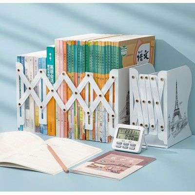 伸缩书立可伸缩书立创意学生多功能书桌收纳书架文具书靠架折叠书夹书挡图案随机一个SKU:YJ002163