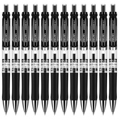 得力0.7按动中性笔S02粗头硬笔书法专用笔练字笔学生用黑色子弹头水笔黑笔碳素圆珠水性签字笔 单支装SKU:YJ002218
