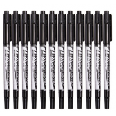晨光记号笔 黑色双头细杆记号笔 重点标记记号笔 12支/盒XPMV7403 黑色记号笔单支装(黑)SKU:YJ002248