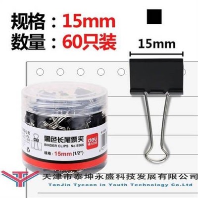 得力 8566 黑色长尾夹 60个/筒 黑色SKU:YJ002260