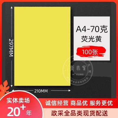 A4打印纸 70g彩纸(100张/包)荧光黄色 亮黄色