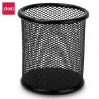 得力(deli)9172 金属网纹圆形笔筒(黑)