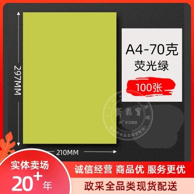 A4打印纸 70g彩纸(100张/包)荧光绿色 亮绿色