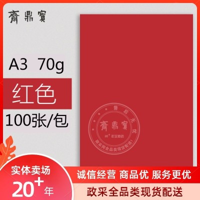 A3彩纸 打印纸 100张/包 70g 红色