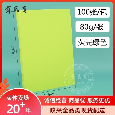 A4彩色不干胶打印纸 彩纸 100张/包 80g 荧光绿色