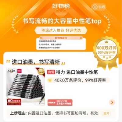 得力(deli)60支0.5mm中性笔签字笔水笔 子弹头黑色33109 办公用品