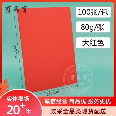 A4彩色不干胶打印纸 彩纸 100张/包 80g 大红色