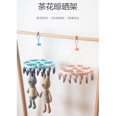 晾衣架 仿藤编晒架(圆形18夹)(颜色随机) 97