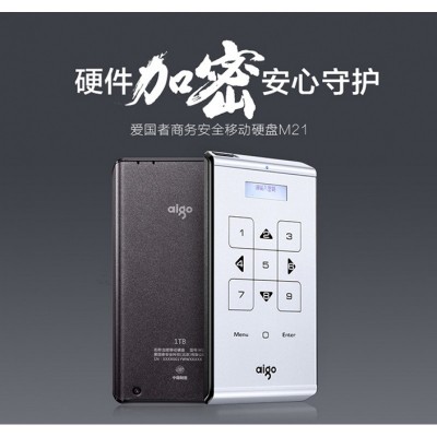 爱国者(aigo)M21触控式 USB3.0 移动硬盘 自动休眠上锁 数字加密移动硬盘 银色 4TB
