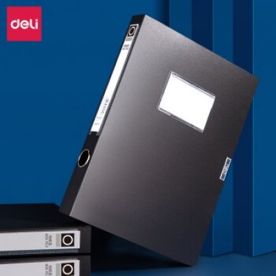 得力加厚A4粘扣档案盒塑料文件盒 背宽35mm 黑色